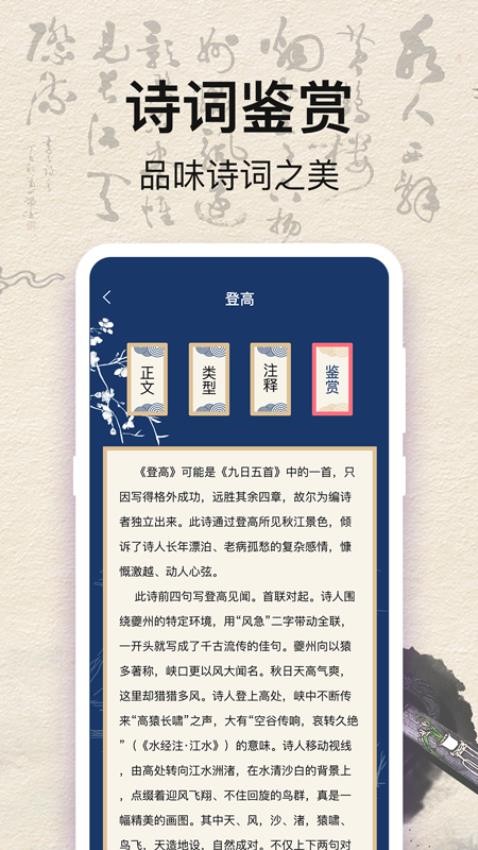 获得中华诗词学会认证,内容经三重学术审核,配备实时更新的学术动态推送功能。2、交互创新设计
